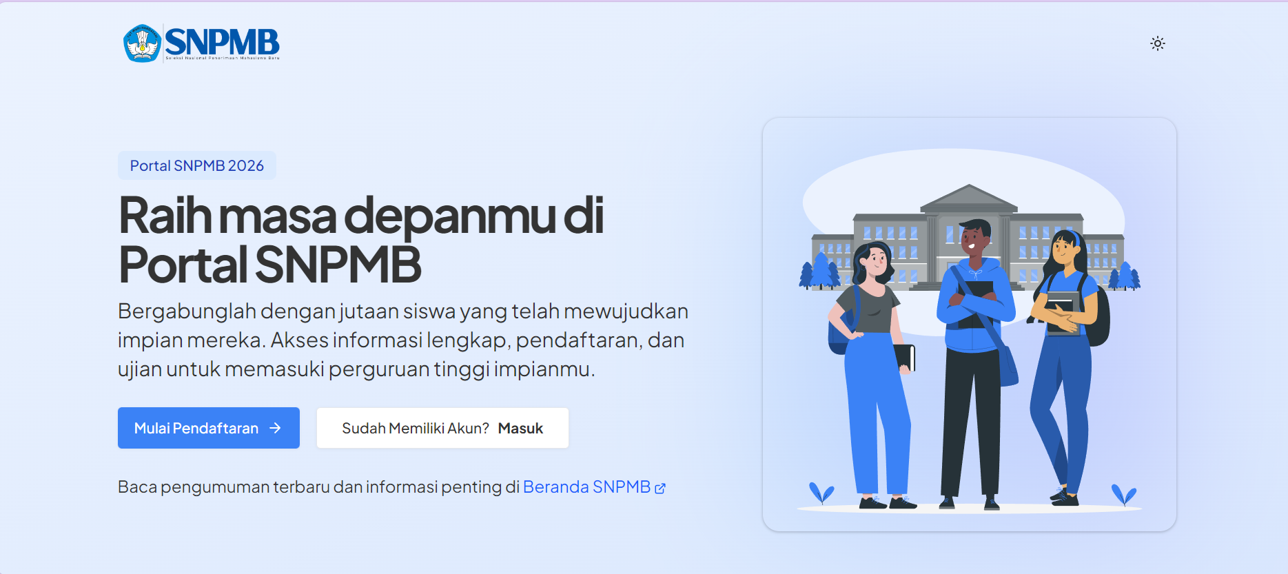 - Buka portal resmi SNPMB 2026 di alamat snpmb.id.