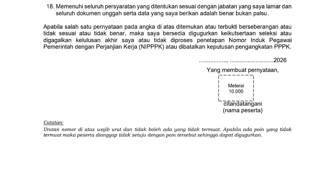 Isi Penting Surat Pernyataan PPPK (18 Poin)