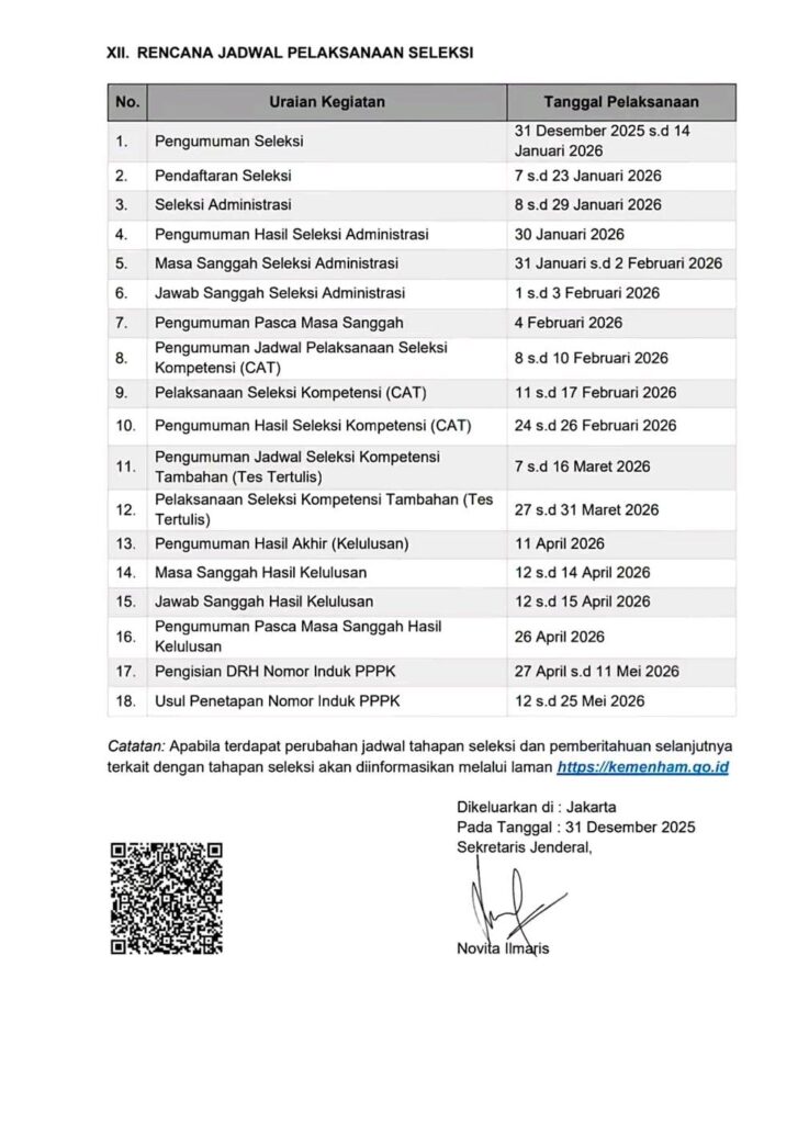 Melalui pengumuman resmi Nomor: SEK-1140.KP.02.01 Tahun 2025, Kementerian HAM RI membuka seleksi Pegawai Pemerintah dengan Perjanjian Kerja (PPPK) untuk penempatan pusat hingga 38 Kantor Wilayah di seluruh Indonesia.