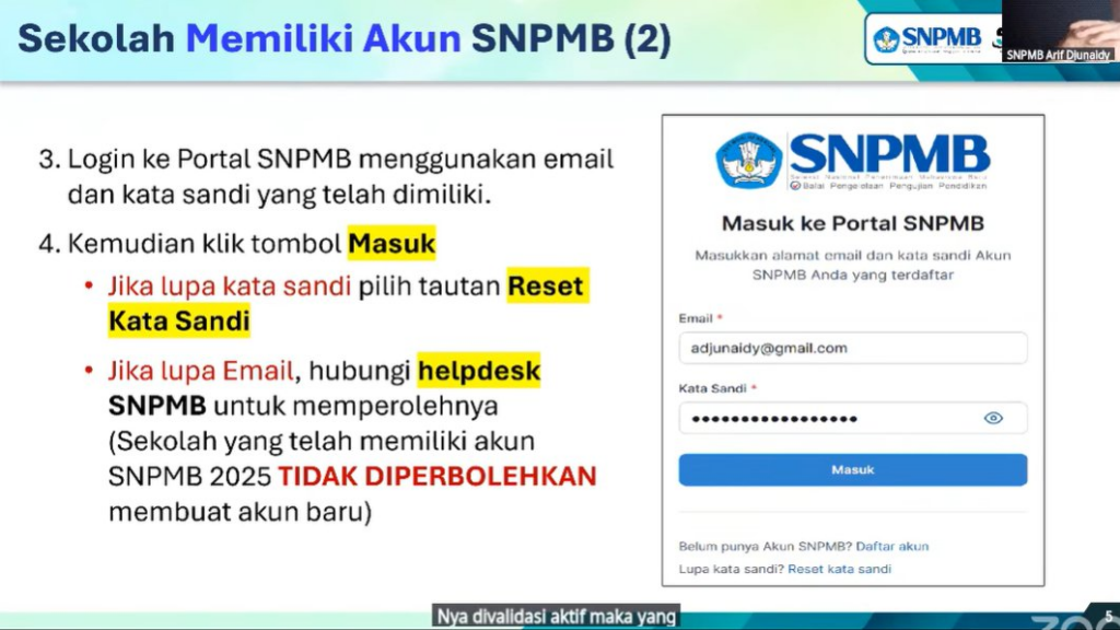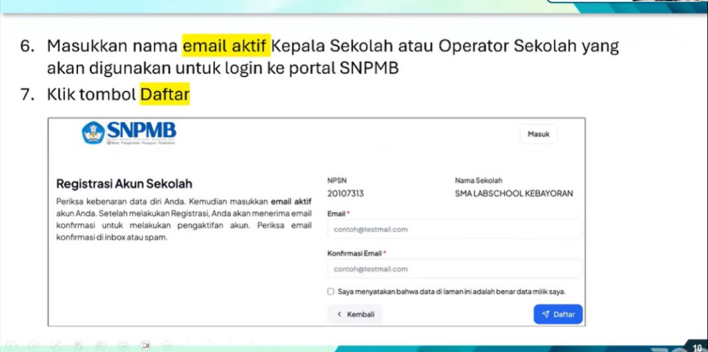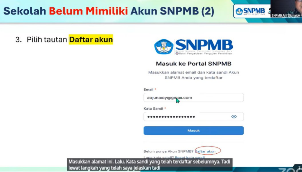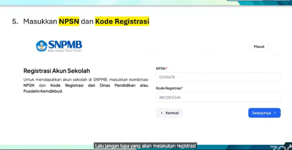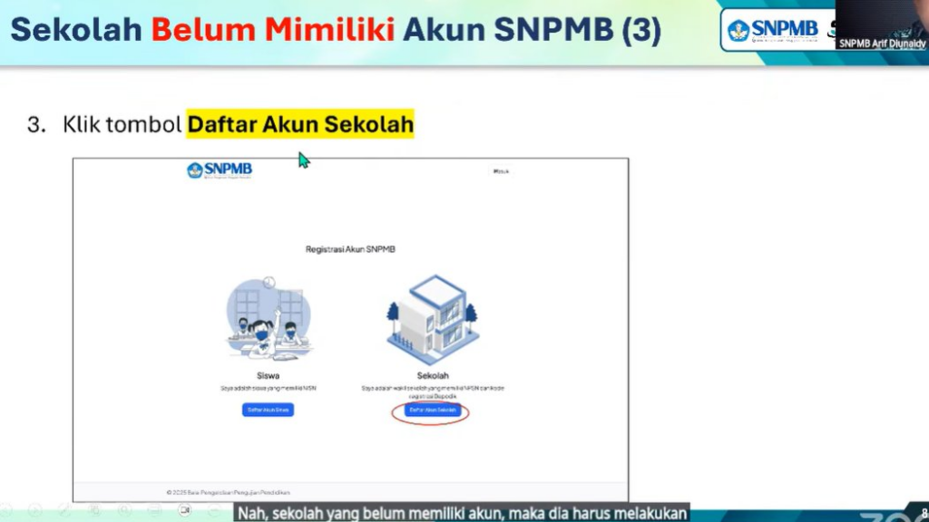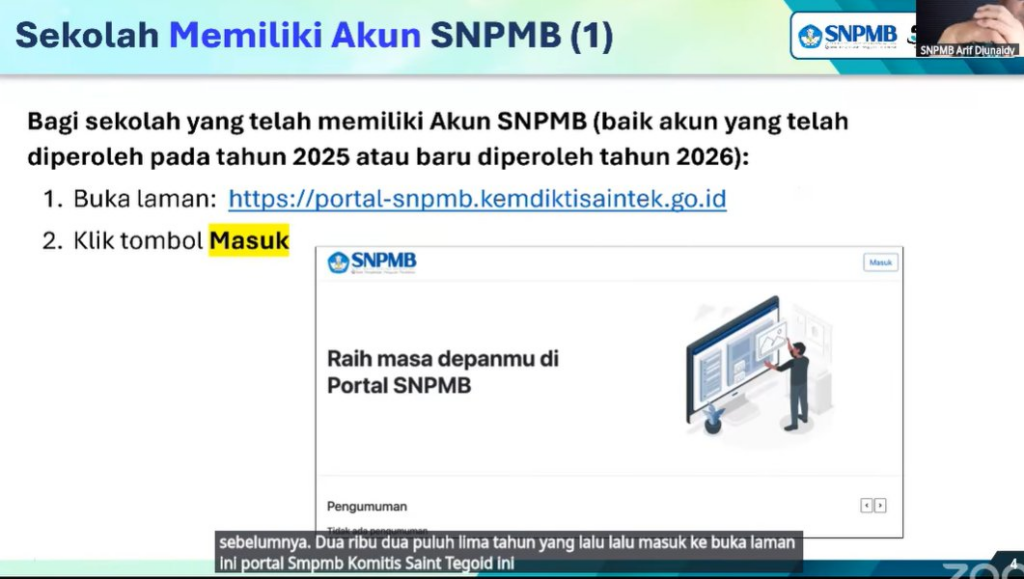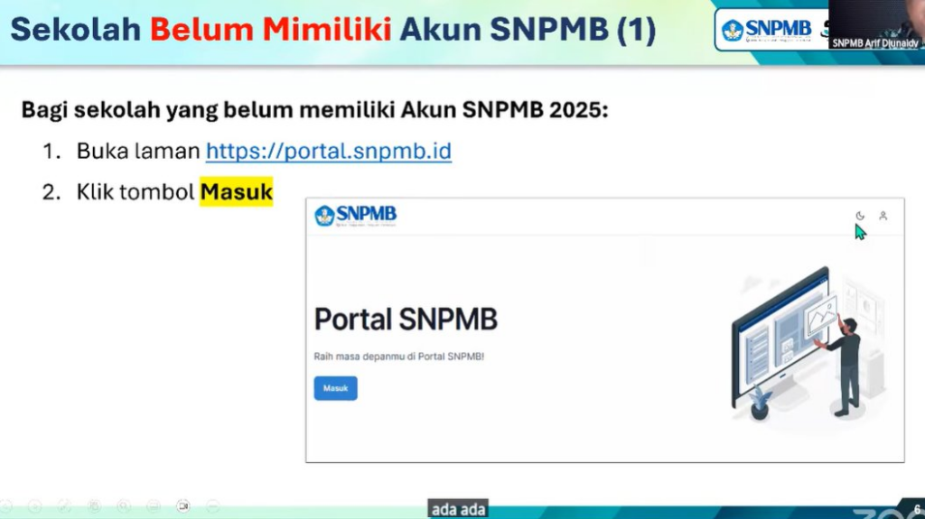 → Registrasi akun SNPMB Sekolah