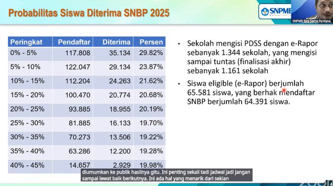 Berkaca dari SNBP 2025, data menunjukkan bahwa: