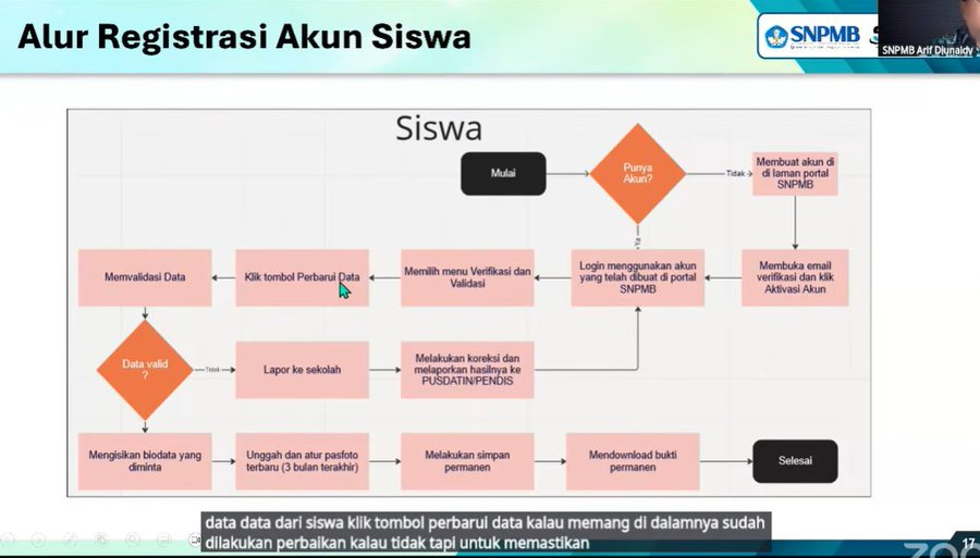Gambar di atas menunjukkan bahwa proses registrasi akun SNPMB untuk siswa tidak hanya soal membuat akun, tetapi juga mencakup verifikasi, validasi data, hingga penyimpanan permanen yang tidak bisa diubah kembali.