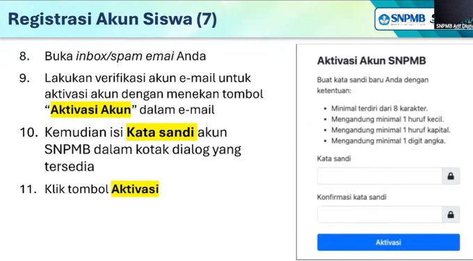 Tanpa aktivasi email, akun SNPMB dianggap belum aktif dan tidak bisa digunakan untuk tahap selanjutnya.