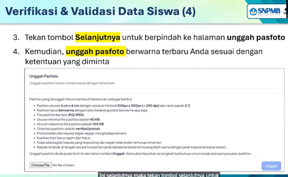 Salah satu tahap penting adalah unggah pas foto akun SNPMB.